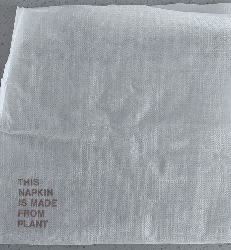 A well-known coffee chain in Thailand has printed this sentence on their napkins: ‘This napkin is made from plant.’